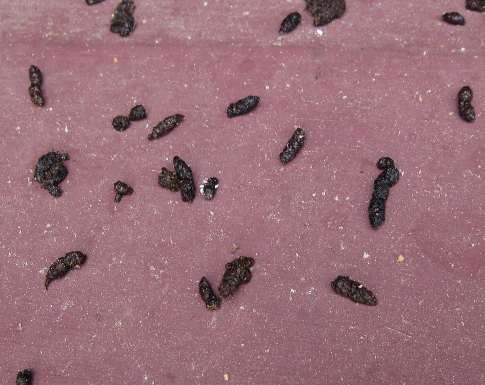 Les crottes « fraîches » sont brillantes, molles et foncées.leur présence est synonyme d'une infestation active. Ces derniers sont friables et brillants et dégagent une odeur. Les crottes « fraîches » sont brillantes, molles et foncées.leur présence est synonyme d'une infestation active... Leurs crottes sont donc constituées d'innombrables fragments de carapaces d'insectes donnant des excréments fragiles, mais ô combien riches en minéraux.