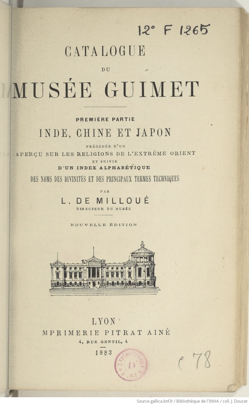 La bibliothèque sera fermée pour récolement du 14 au 25 août 2017... Un dictionnaire des termes que vous rencontrerez. Histoire du musée guimet la bibliothèque historique emile guimet, fondateur du musée hôtel d'heidelbach histoire du lieu le jardin de l'hôtel d'heidelbach musée d'ennery histoire du musée d'ennery. Des parcours pour découvrir autrement les oeuvres du musée. Lire la suite… catalogue de la bibliothèque.